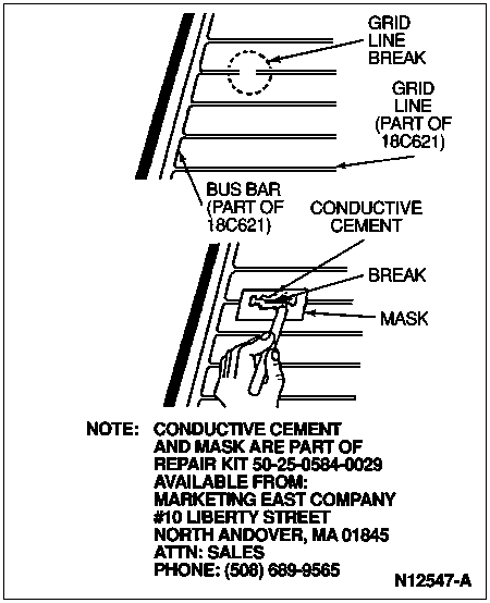 Any break in the grid longer than 25mm (1 inch) cannot be serviced. The rear window must be replaced. For breaks less than 25mm (1 inch) long, use the following procedure: