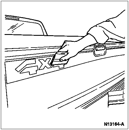 Using squeegee (3M PA-1 or equivalent) and firm overlapping pressure, begin from center of tape stripe or decal and squeegee toward the sides and then toward the front. The tape stripe or decal can be easily lifted and reapplied if air bubbles are present.