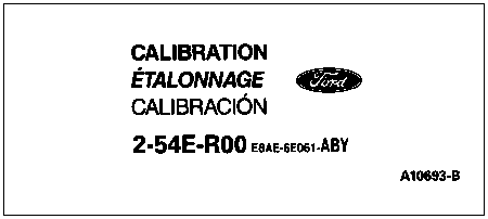 The emission calibration number label is located on the left side door or left door post pillar. It identifies the engine calibration number and revision level.
