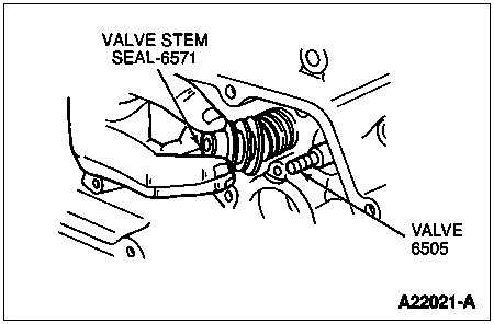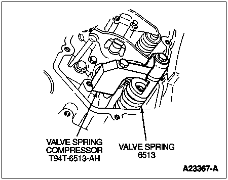 Remove Valve Spring Compressor T94T-6513-AH. Remove the valve spring retainer keys, rotator and the valve spring (6513).
