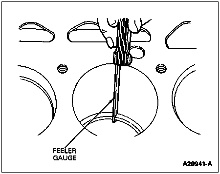 Measure gap between ends of piston ring with a feeler gauge. If piston ring end gap is greater than specified limits, try another partial piston ring set (6148). If piston ring end gap is less than specified limits, carefully file piston ring ends to achieve correct piston ring end gap. Refer to Specifications in this section.