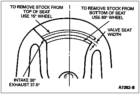 If valve seat width exceeds maximum limit, remove enough stock from top edge and/or bottom edge of seat to reduce width to specification. Refer to Specifications at the end of this section.