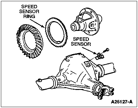 The vehicle speed sensor is mounted on the front of the rear axle housing above the pinion flange. The speed sensor ring is located in the rear axle between the ring gear and differential case. The signal from the sensor is not routed directly to the powertrain control module (PCM). It is received by the Programmable Speedometer/Odometer Module (PSOM), which provides the PCM with a vehicle speed signal.
