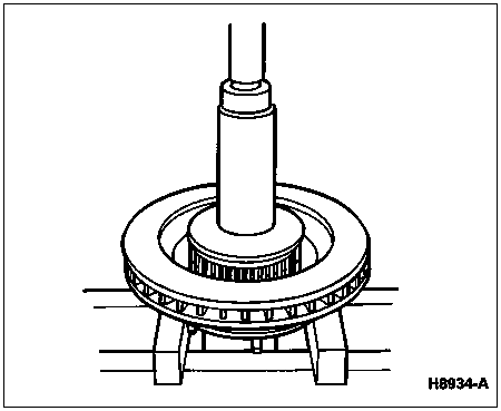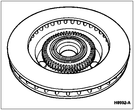Position new front brake anti-lock sensor indicator on front disc brake hub and rotor (1102). Using a cylinder with 79mm (3.1-inch) ID and 96mm (3.8-inch) OD, press the front brake anti-lock sensor indicator onto the hub. The front brake anti-lock sensor indicator must be fully seated against the shoulder in the front disc brake hub and rotor.