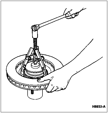 Using a 3-jaw puller, remove front brake anti-lock sensor indicator from hub.