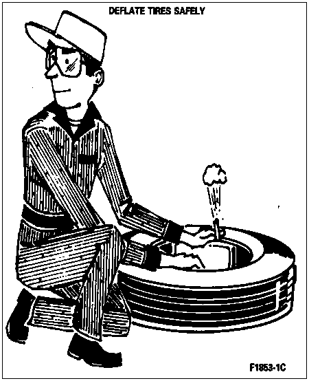 - Stand as far as possible from the valve stem while inflating tires. Avoid a position where the face or body is immediately over the work being done on any tire in which there is pressure.