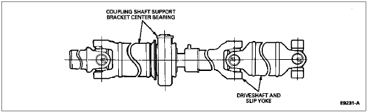 NOTE: Driveshafts and coupling shafts are balanced; therefore, if the vehicle is being undercoated, the shafts and all open spline areas must be covered to prevent undercoating material from getting on the shafts.
