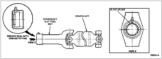NOTE: All driveshafts are balanced. Therefore, if the vehicle is to be undercoated, cover the driveshaft to prevent undercoating material from getting on the shaft.