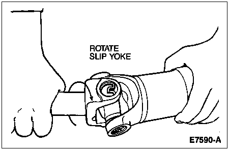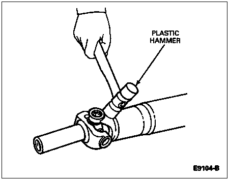 Check U-joints for freedom of movement. The effort required for movement should not exceed 4 Nm (35 lb-in) when measured with a spring scale. If binding has resulted from misalignment during assembly, a sharp rap on the yokes with a brass or plastic hammer will seat bearing needles. Take care to support the shaft end and do not strike the bearings during this procedure. Make sure U-joints rotate easily without binding before installing driveshaft.