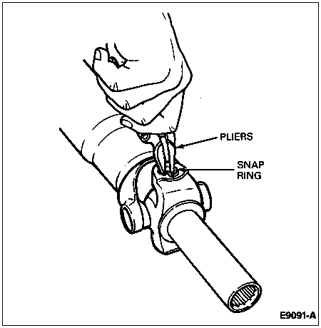 Remove driveshaft from U-joint tool and install a new snap ring.
