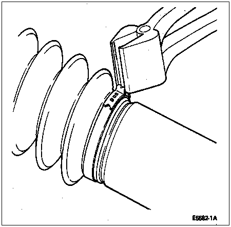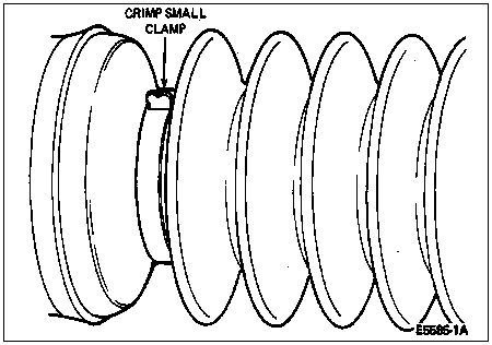 Before installing the new large slip yoke boot clamp, make sure that any air pressure which may have built up in the slip yoke boot is relieved. Carefully insert a screwdriver between the slip yoke boot and the driveshaft slip yoke and allow the trapped air to escape ("burp") from the slip yoke boot. THE AIR MUST BE RELEASED ONLY AFTER THE DRIVESHAFT IS SET AT THE SPECIFIED LENGTH.