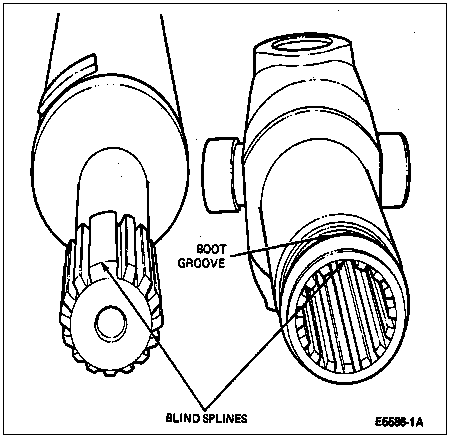 If, during inspection, the driveshaft and coupling shaft boot is found to be cracked or split, the grease should be checked for contamination. Check the lubricant by rubbing between two fingers. Any gritty feeling indicates a contaminated driveshaft slip yoke and stub shaft. If driveshaft (4602) is operating satisfactorily and the grease does not appear to be contaminated, add grease as described in the assembly portion of this procedure and replace the slip yoke boot. If the grease appears contaminated, disassemble the driveshaft, clean and inspect the stub shaft and driveshaft slip yoke for wear. If splines are excessively worn, replace driveshaft.