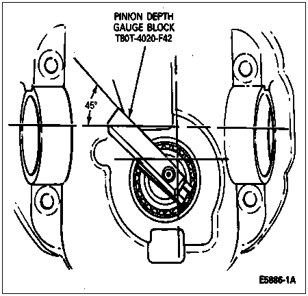 Utilize pinion shims as the gauge for shim selection. This will minimize errors in attempting to stack feeler gauge stock together or simple addition errors in calculating correct shim thickness. A slight drag should be felt on the pinion shim for correct selection. Do not force the pinion shim between the gauge block and the gauge tube. This will minimize selection of a pinion shim thicker than required which results in a deep tooth contact in final assembly of integral axles.