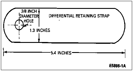 To simplify installation, fabricate two differential case retaining straps from metal stock as shown. These retaining straps will prevent the differential case from falling out of the rear axle housing (4010).