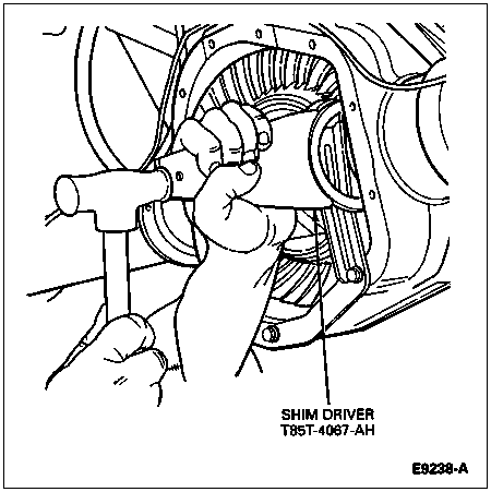 Install the differential bearing shims (4067) by driving into position with Shim Driver T85T-4067-AH.