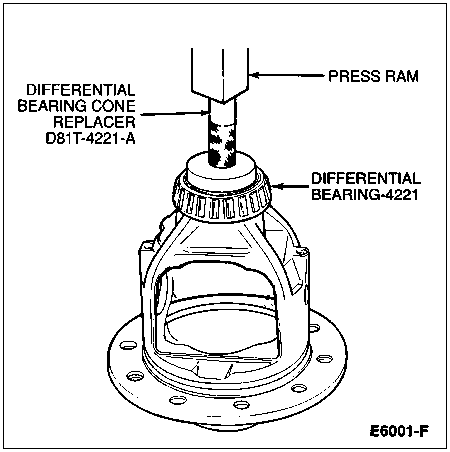 Install differential bearings on the case hubs using Differential Bearing Cone Replacer D81T-4221-A or equivalent.