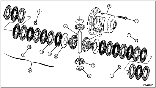 NOTE: The differential bearings (4221) need not be removed to overhaul the Ford limited slip differential. If bearing removal is required, refer to Differential Bearings in the Removal and Installation portion of this section.