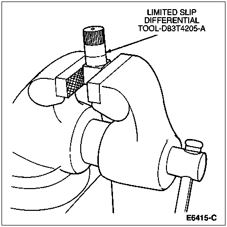 Install Limited Slip Differential Tool D83T-4205-A or equivalent in a suitable vise. Install differential (4026) in the vise with the ring gear side facing up.