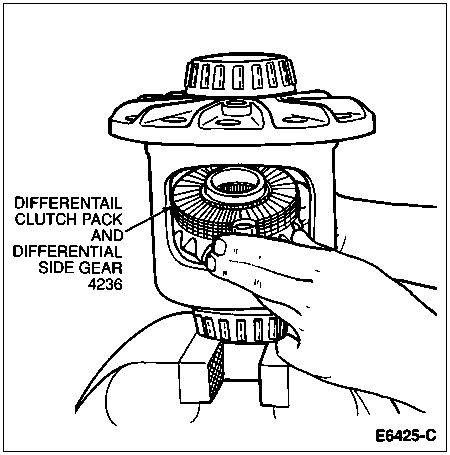 Prelubricate the thrust face of the differential side gears. Assemble the clutch plates and clutch discs to the side gear splines in exactly the same sequence in which they were removed. Assemble the retainer clips to the ears of the clutch plates. Make sure both clips are completely assembled and seated onto the ears of the clutch plates.