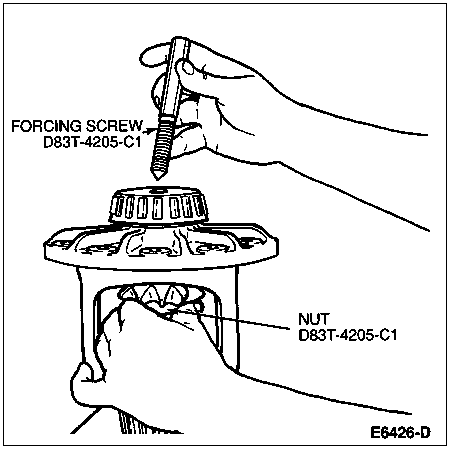 NOTE: It will probably be necessary to loosen or tighten the forcing screw to allow the differential pinion gears and differential side gears to rotate.