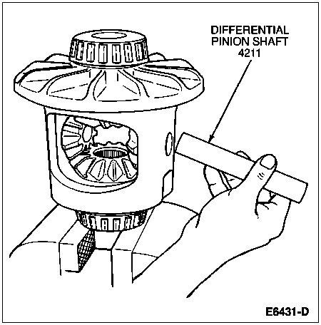With a hammer and drift, drive the differential pinion shaft (4211) from the differential case (4204).