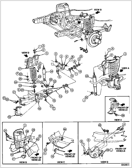 Install the front stabilizer bar. Refer to Section 04-01B.