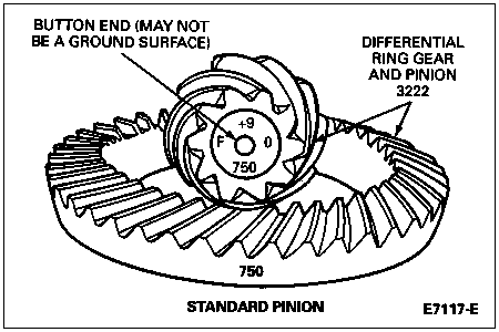 If a new ring gear and drive pinion is being installed, note the plus (+), minus (-) or zero (0) marking on the button of the pinion. Refer to the charts. Add or subtract shims, according to the chart to compensate for differences between the old and new pinion.