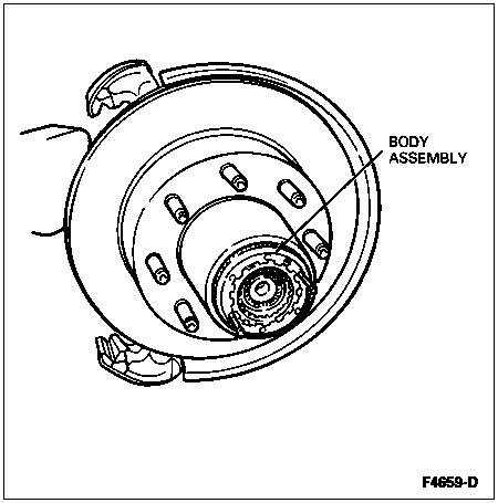 Remove the body assembly from the front disc brake hub and rotor. If the body is difficult to remove, install two capscrews and pull the body assembly out of the front disc brake hub and rotor.