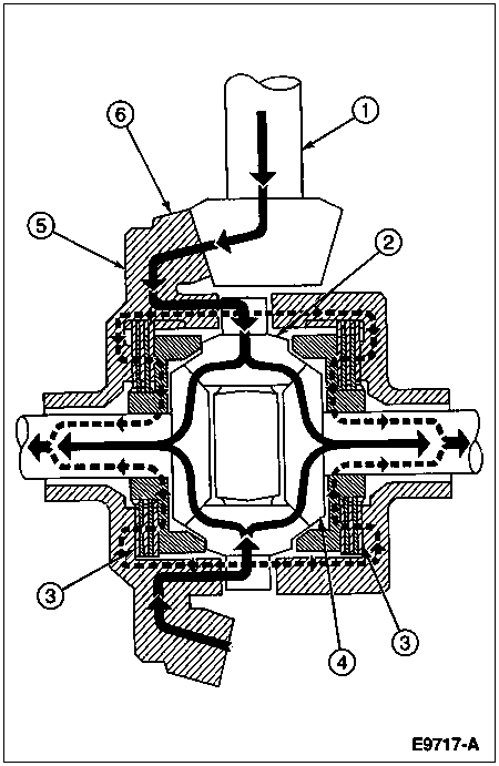 The limited slip differential has the same power flow as a conventional differential plus a more direct flow which automatically takes effect as driving conditions demand. This more direct flow is from the differential case to each axle shaft through a clutch plate and disc arrangement. Arrangement of these plates and discs is at the option of the vehicle manufacturer, so care should be taken during disassembly to note the arrangement of these components.