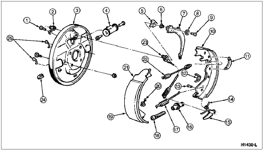 Remove the wheel and brake drum (1126). If the brake drum does not clear the rear brake shoes and linings (2200), retract the rear brake shoes and linings.