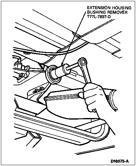 Remove the extension housing bushing (7A034) using Extension Housing Bushing Remover T77L-7697-D.