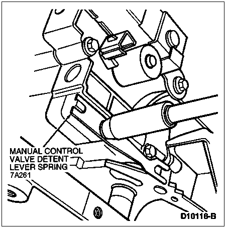 Install manual control valve detent lever spring and bolt. Tighten bolt to 9-11 Nm (80-100 lb-in).