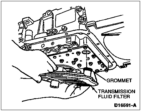 Inspect transmission fluid filter. If OK, reuse. Install filter and grommet.