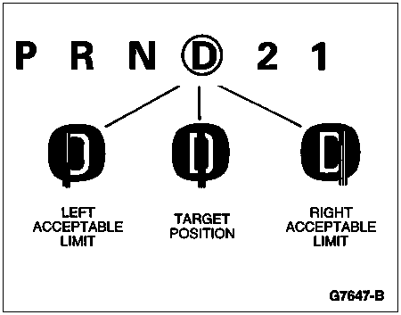 Center pointer in the middle of D if equipped with C6 transmission, or (D) if equipped with E4OD transmission, by rotating the thumbwheel located on right-hand side of steering column actuator housing.