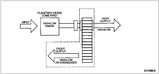 The Borg Warner 13-56 electronic shift transfer case is a three-piece magnesium part-time transfer case. It transfers power from the transmission to the rear axle and, when actuated, also the front drive axle. The unit is lubricated by a positive displacement oil pump that channels oil flow through drilled holes in the rear output shaft.