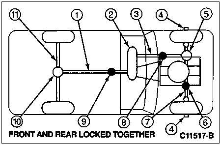 On vehicles equipped with a manual shift transfer case (7A195) and manual locking hubs, low range can be selected when the vehicle's front hubs are unlocked. This is useful for short distances if very low, creeper gearing (but not 4WD) is needed. Refer to Section 04-01B for diagnosis, testing and repair procedures.
