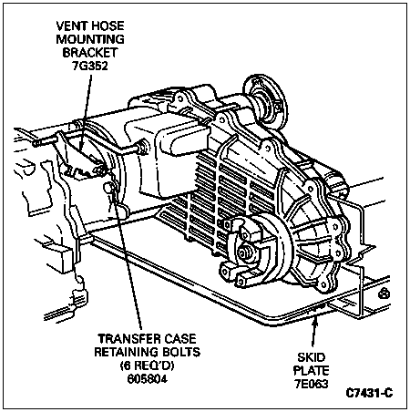 Support the transfer case with a suitable transmission jack such as Rotunda Hi-Lift Jack 164-R3510 or equivalent.