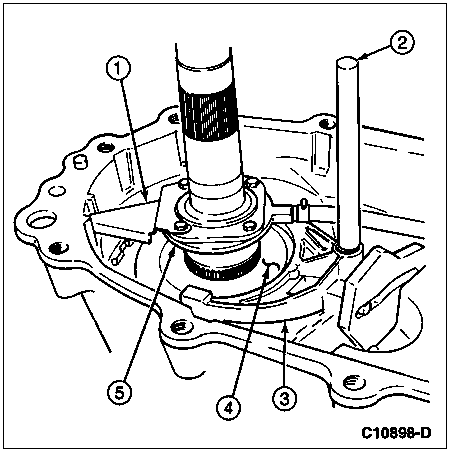 Apply a very small bead of Black Non-Acid Cure Silicone Rubber ET7Z-19562-A or equivalent meeting Ford specification ESL-M4G273-A to the face of the rear bearing retainer or rear slip-yoke extension housing (7A039).