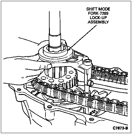 Install the lockup and its shift fork over the external splines of the drive sprocket and the shift rail with the cam follower feature of the fork facing the front of the transfer case.