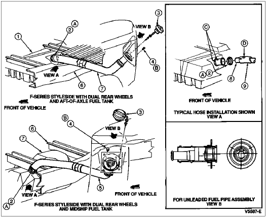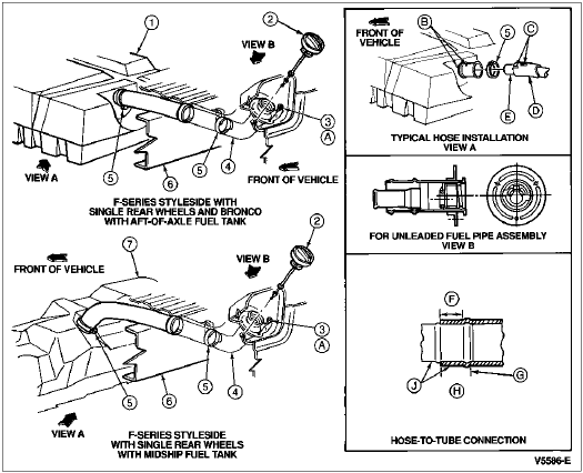 Fuel Filler System Installation, Single Rear Wheel Styleside, F-150, F-250, F-350 and Bronco