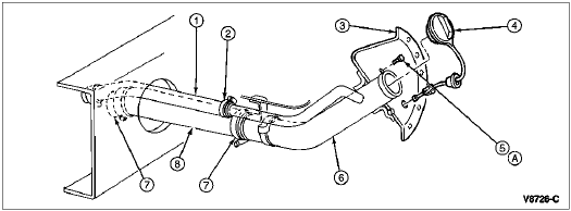 Adjust hose to obtain snug filler pipe installation. Tighten hose clamps to 2.7-3.7 Nm (23-32 lb-in). Make certain clamps are forward of flange on filler pipe to ensure a leakproof connection.