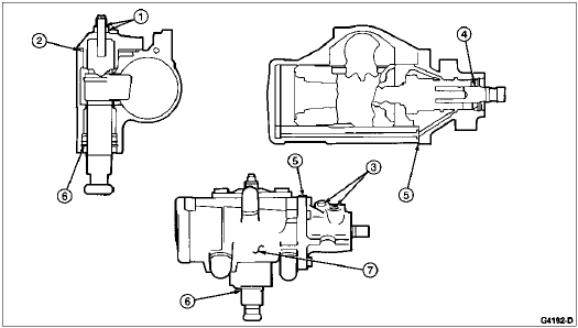 | 6. Sector shaft seals and snap ring | Replace sector shaft seals. Check seal bore, shaft, and snap ring groove for damage. Check sector housing roller bearing for damage. |