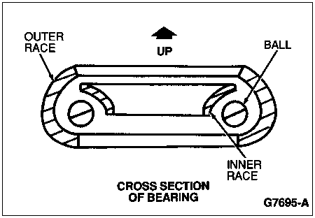 Position steering column bearing so that the inner race will face up (inner race fully visible in up position), or out from lock cylinder housing, when installed.