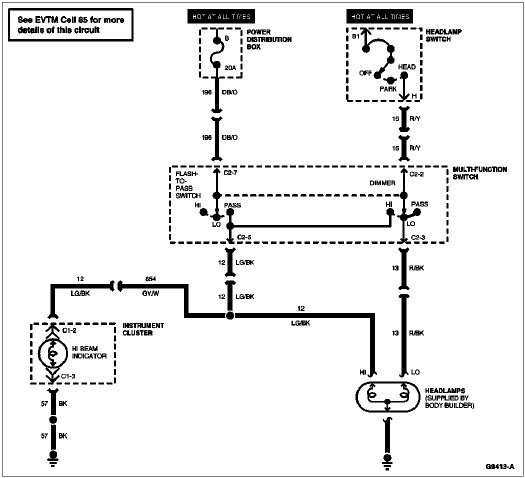 | 7 | 196 (DB/O) | Flash-to-Pass Power Feed to High Beams |