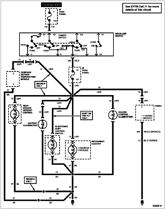 | 570 (BK/W) | Dedicated Ground to Gauges (Bronco) | |