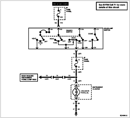 | 19 (LB/R) | Instrument Panel Lamp Feed* | |