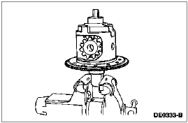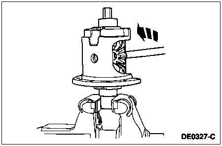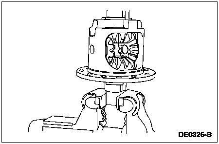 WARNING: KEEP FINGERS/HANDS AWAY FROM PINION GEARS WHEN ROTATING THE DIFFERENTIAL CASE WITH THE DIFFERENTIAL ROTATING TOOL.
