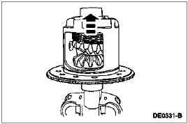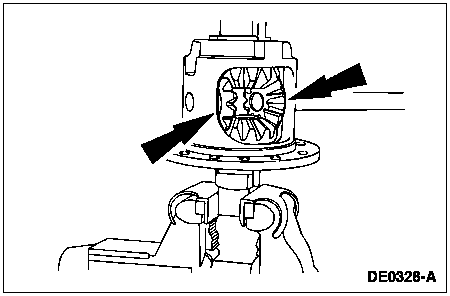 Position the differential pinion gears and differential pinion thrust washers in the window of the differential case so they mesh with the differential side gear teeth.