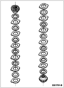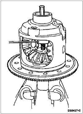 Separate the differential clutch discs and clutch plates for cleaning and inspection. Refer to the disassembled view of the limited slip differential case at the beginning of this procedure.