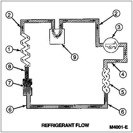 Extending this basic coverage of a refrigerant circuit, the following traces refrigerant flow through actual circuit components.